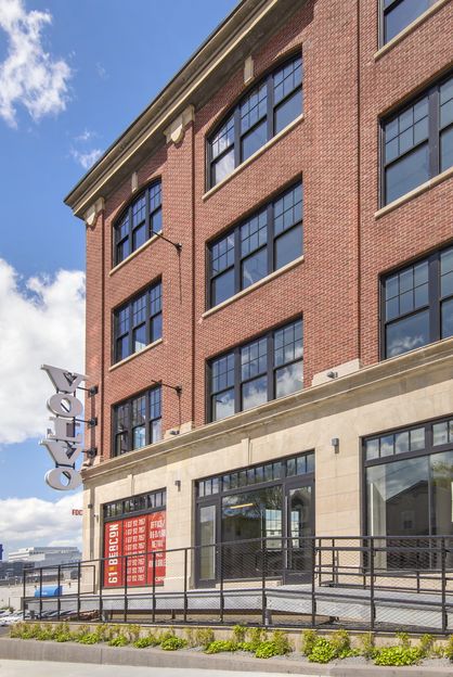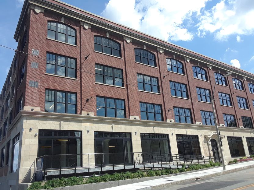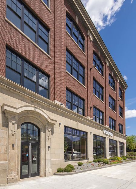 Project Description: The five-story, 71,000 square-foot historic Beaux Arts building, constructed in 1925, was once the New England regional headquarters for International Harvester. The renovated building includes 2,200 square feet of ground-floor retail and 28,000 square feet of office space. The building features arched windows, highlighted by a fifty-foot bay window opening to the lobby, and eight-to-ten-foot-high windows on the main floor, providing abundant natural light for the building.